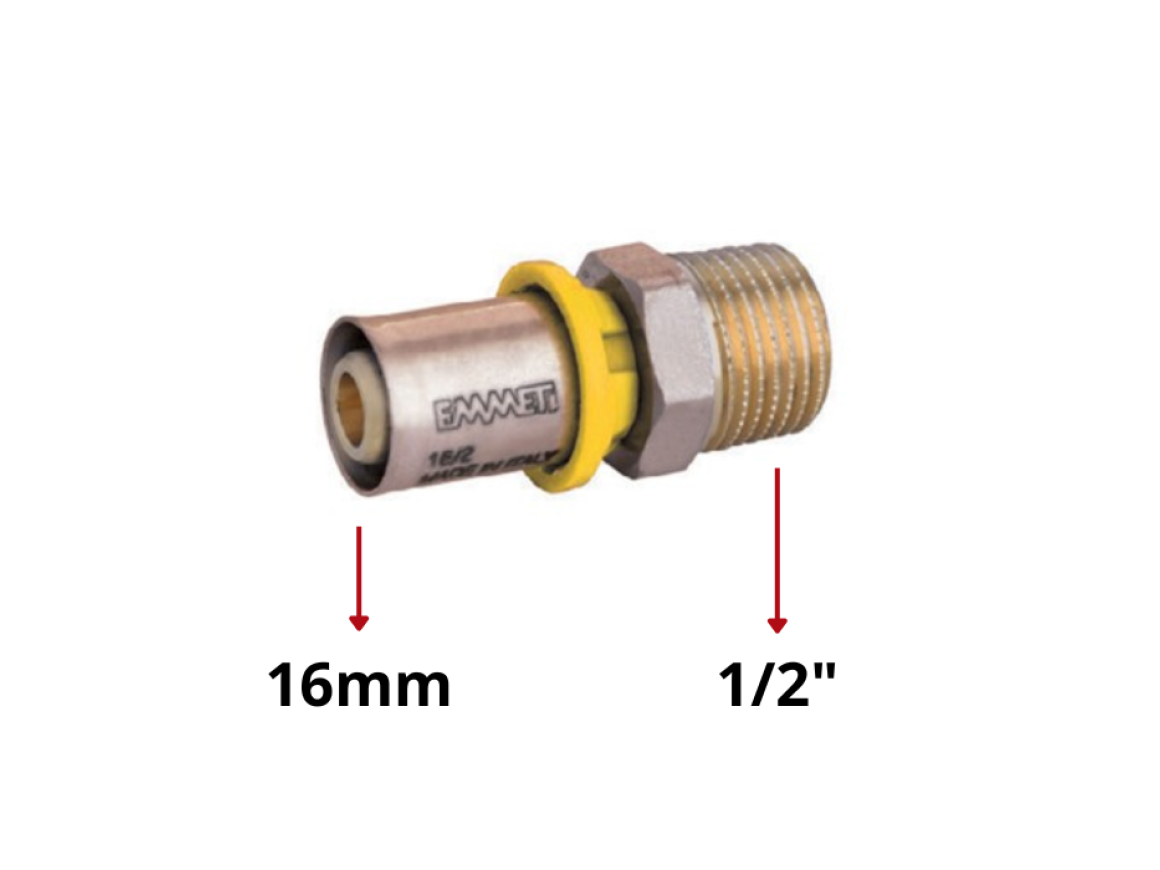 Conector Macho Gás Multicamada 16mm x 1/2"