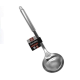 Essa é uma concha em aço inox, resistente e fácil de limpar, com pequena alça na extremidade do cabo que permite pendurá-la.